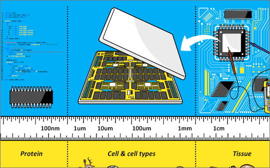 The hierarchical structure of a computer mirrors that of living organisms, and soon we will be bridging the gap between computer and creature. In our last blog post: Transcending Time, Space, and Resources via Life Virtualization we discussed how scientists will be able to perform in silico experiments by using L++ to design and code organisms in a language that computers can use to accurately generate virtual life that behaves molecularly and cellularly like a living organism. Virtual life models designed by L++ will be built using the same logical construction that supports life, allowing users to navigate the scaffolding of life at resolutions from single molecules to whole organisms.